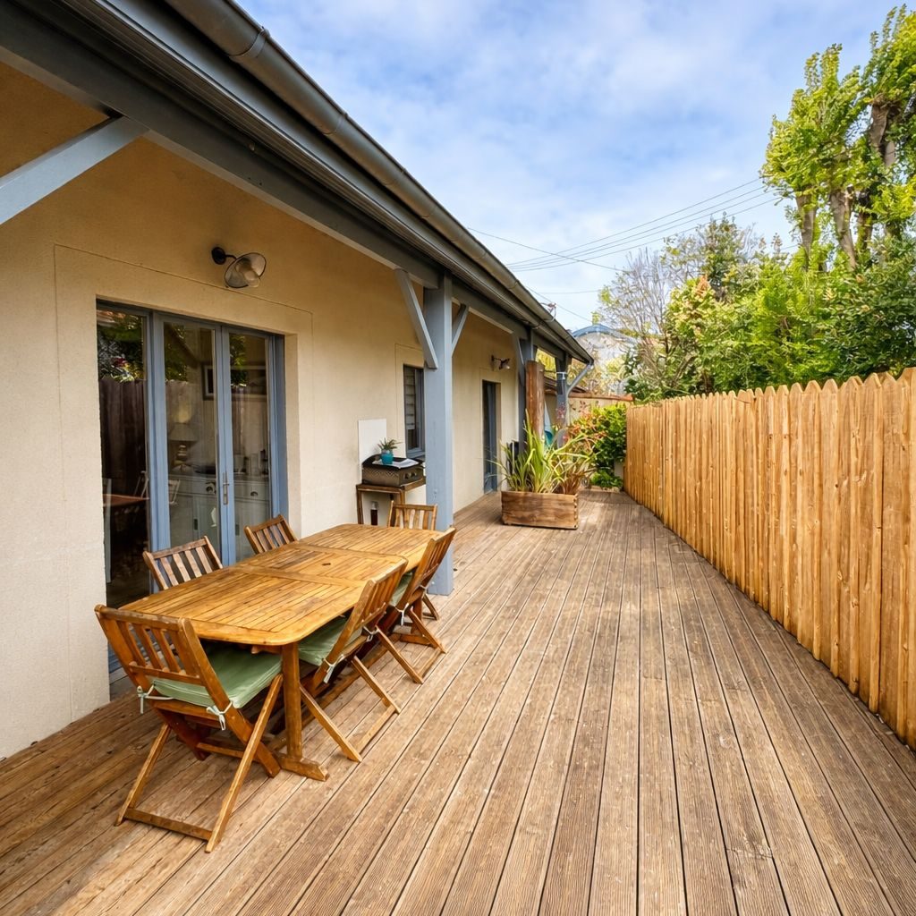Un espace lumineux et convivial où profiter des repas et moments de détente en plein air avec douche extérieure